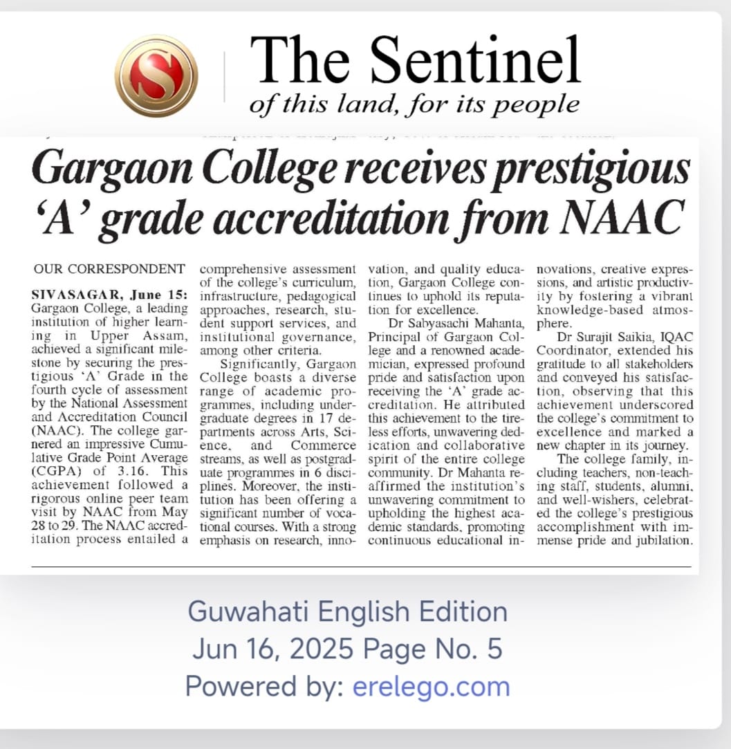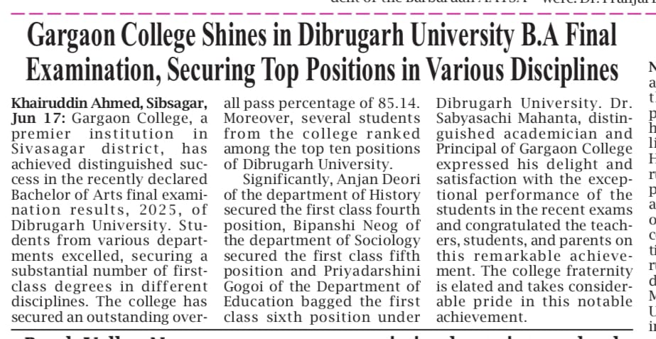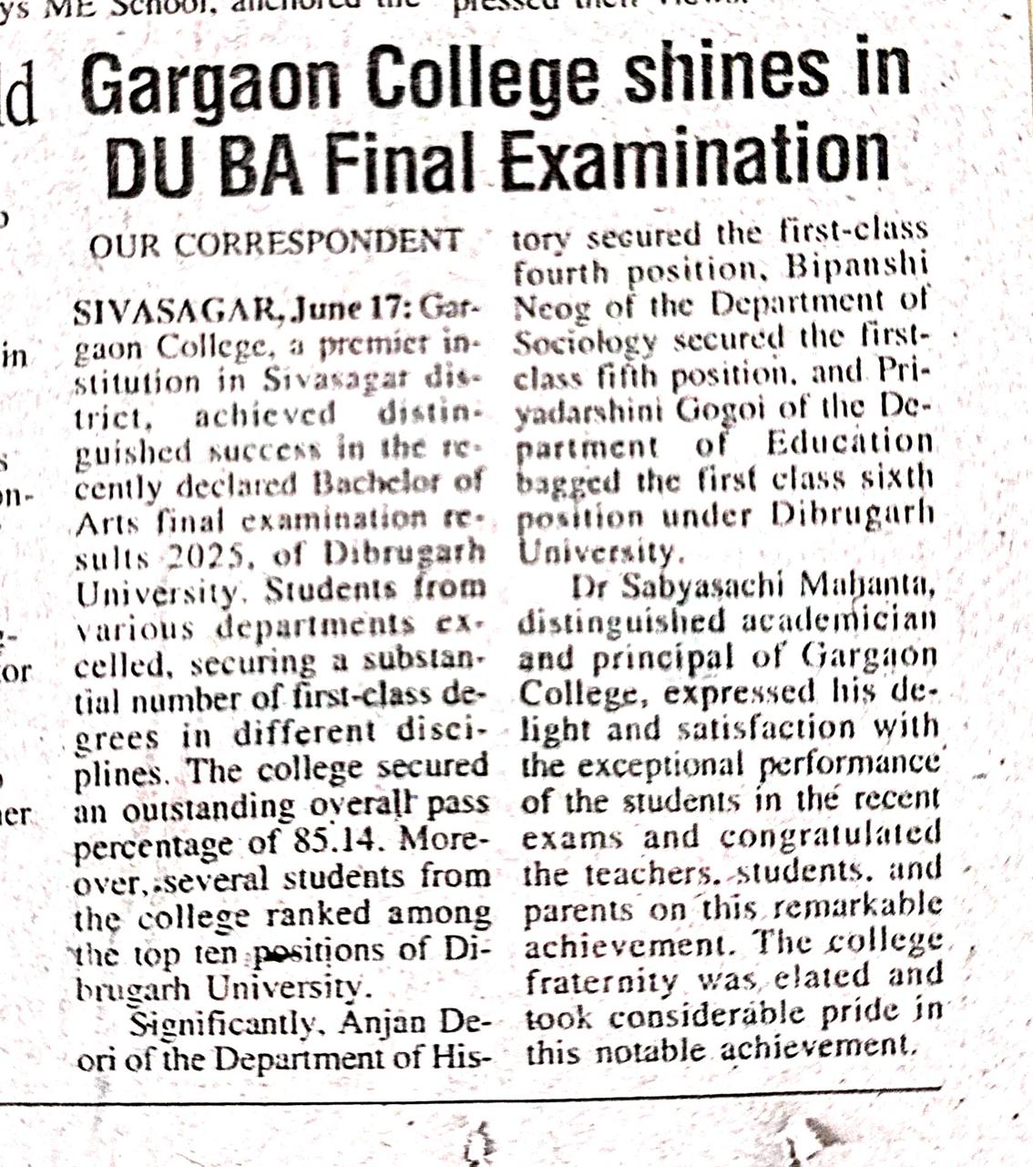 Title: | 2025:Month of June: News and events of Gargaon College |