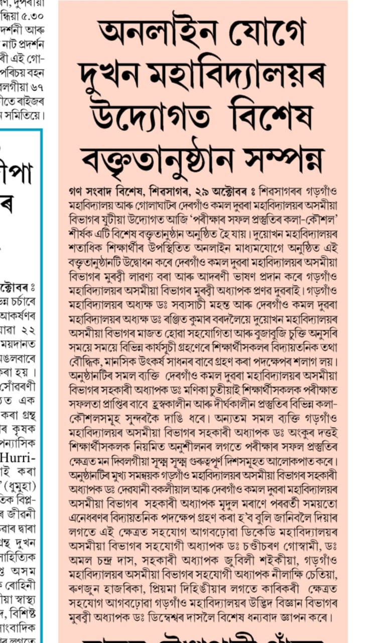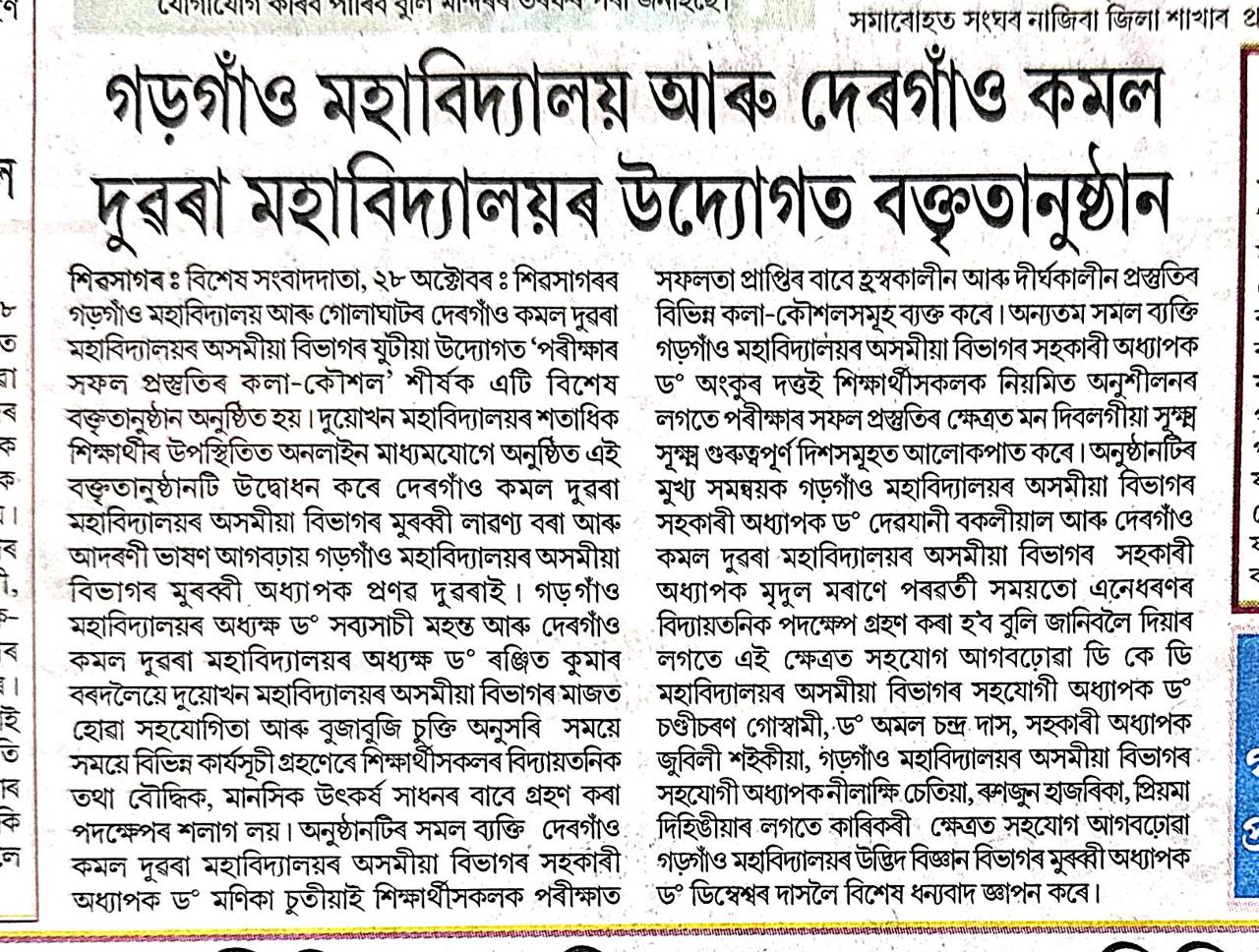 On line lecture organised at Gargaon College.jpegLecture on the successful completion of examination and skill develioment organised at Gargaon College182.54 kBJPEGView/Open